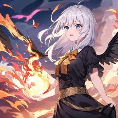 <lora:elaina:0.8>,((masterpiece), best quality, perfect anatomy,wallpaper,1girl,solo,white hair,beautiful detailed glow,floating ashes,beautiful and detailed explosion,red moon,fire,fire cloud,wings on fire,a cloudy sky,smoke of gunpowder,burning,black dress,dove of peace,(floating cloud:1.2),
