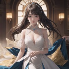 masterpiece,best quality,CG 8k wallpaper,illustration,amazing fine details and brush strokes,smooth,(((1girl))),extremely detailed,dynamic composition,motion,incredibly detailed,white court dress,loli,moonlight,beautiful,detailed eyes,[white hairblue hair],blue eyes,long_curly_hair,hands behind back,highly detailed,solo,full,amazing,beautiful,finely detail,(stars),galaxy,ray trace,Depth of field,