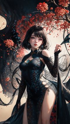 official art, unity 8k wallpaper, ultra detailed, beautiful and aesthetic, masterpiece, best quality, (zentangle, mandala, tangle, entangle), (fractal art:1.3) , 1girl, red flowers, extremely detailed, dynamic angle, cowboy shot, the most beautiful form of chaos, elegant, a brutalist designed, vivid colours, romanticism, by james jean, roby dwi antono, ross tran, francis bacon, michal mraz, adrian ghenie, petra cortright, gerhard richter, takato yamamoto, ashley wood, atmospheric,,tutututu, cheongsam, <lora:tutuqpqp_0001:0.75>