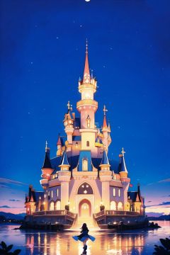 absurdres,incredibly absurdres,reality,realistic,,(solo:1.2),1girl,full_shot,,zgct color,Energetic girl, MG_ip,Landscape wallpaper style,dream castle