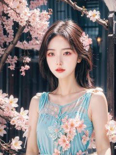 woman, flower dress, colorful, darl background,flower armor,pink theme,exposure blend, medium shot, bokeh, (hdr:1.4), high contrast, (cinematic, teal and orange:0.85), (muted colors, dim colors, soothing tones:1.3), low saturation