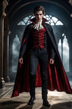 vampire ,Full-length photo, combat posture, 1boy, Surrealism, from below, Nikon, Surrealism, backlighting, backlighting, cinematic lighting, 8k, super detail, high quality, high details, UHD, award winning, textured skin, anatomically correct, UHD, retina, masterpiece, ccurate, anatomically correct, textured skin, super detail, award winning, best quality, high quality, high details, highres, 16k