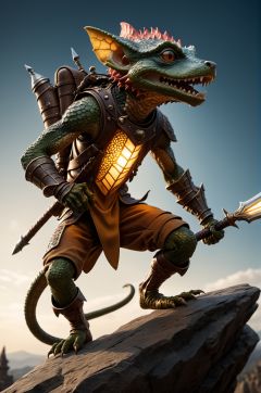 Kobold,Full-length photo, combat posture, Surrealism, from below, Nikon, Surrealism, backlighting, backlighting, cinematic lighting, 8k, super detail, high quality, high details, UHD, award winning, textured skin, anatomically correct, UHD, retina, masterpiece, ccurate, anatomically correct, textured skin, super detail, award winning, best quality, high quality, high details, highres, 16k