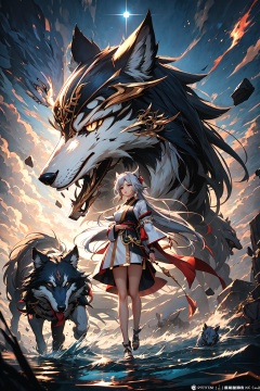 Best quality, 8k, cg, anime girl with a wolf and a demon in the background, by Yang J, keqing from genshin impact, anime fantasy illustration, from arknights, trending on artstation pixiv, detailed digital anime art, genshin, granblue fantasy, by Shitao, anime fantasy artwork, fanart best artstation, 2. 5 d cgi anime fantasy artwork