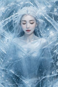 (Masterpiece, high quality, best quality, official art, beauty and aesthetics:1.2),ice and water,(ice:1.4),ice cone,ice circle,1girl,solo,Ice wraps around the girl (lingering:1.2),(white chinese clothes:0.8),space,((extremely detailed ink background)),((flat color)),{{ink splashing}},frost nova,ice ring,a bit like circular magic,facing camera,<lora:ice cake_20231126200433-000018:0.7>,extremely detailed 8K wallpaper,(an extremely delicate and beautiful),intricate detail,exquisite eyes,<lora:lolita_洛丽塔裙子_款式1:0.3:lbw=1,1,0,0,0,1,1,1,1,1,1,1,1,1,1,1,1>,sky,ice bound,ice cake,closed eyes,ice cracks,