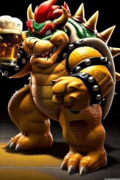modelshoot style, (extremely detailed 8k wallpaper), bowser drinking beer, Intricate, High Detail, dramatic
