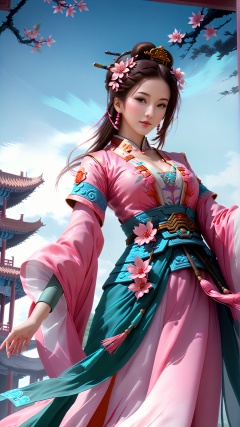 (Ancient military commander style) game cg (surreal thick brush strokes: 1.5) (special perspective: 1.5) (ancient Chinese style color) The pink beauty is leaning in the antique pavilion, with a charming face. Through the effect of perspective, her cheeks are as charming as peach blossoms, complementing the shadows of flowers in the pavilion. The Chinese perspective makes her beauty even more enchanting.