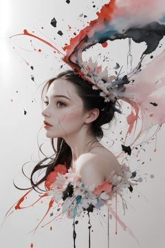 1girl,beautiful and aesthetic,the most beautiful form of chaos,elegant,a brutalist designed,Januz Miralles  contemporary,watercolor,vivid color,