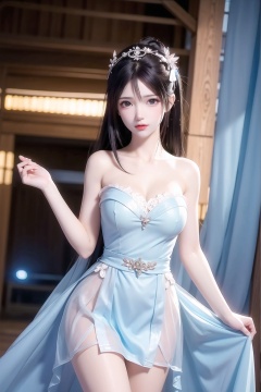 (Masterpiece, Best Quality: 1.4),High Resolution, Ultra Detail, (1girl: 1.3), BREAK IR Photography, Otherworldly Tones, Surrealist Landscapes,Vivid Colors,Creative Expression, Textured Art,(good hands),yuechan,yx-hd,1girl,meidusha,tianhu,liushen,yunyun,A girl,kawaiitech,xwhd,yun,The glowing eyes, the seductive expression,face,cowboy shot, solo,Perfect long legs, sexy long legs,(round),(((Stand gracefully))),(Plump figure),tactile,full,healthy,solid,healthy,(((Simple French strapless dress in light blue))),Clean neck, clean chest,Purple pupils, purple eyes,Sexy poses, hot bodies, body displays,girl, 1girl