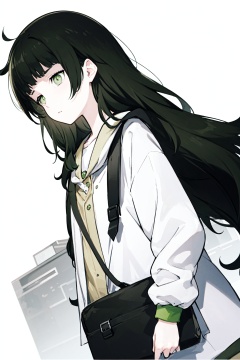 messy hair, dark green hair, very long hair, green eyes, bags under eyes, greyscale,greyscale