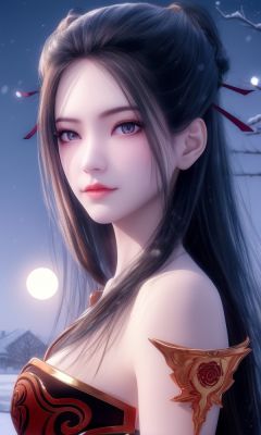 (,1girl, ,best quality, )<lora:357-DA-天行九歌-焰灵-红装:0.8>,, ,masterpiece, (( , )),, realistic,science fiction,mole, ultra realistic 8k cg, ,tamari \(flawless\),     ,outdoors, snow, snowing, snow on head, sun,sunset,sunlight,moonlight,full moon, red moon,  crescent moon,  crescent rose,  black rose,       (()), (),