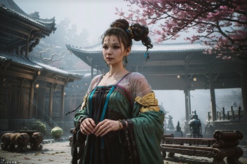 1girl, solo, black hair, long sleeves, jewelry, upper body, earrings, hair bun, facial mark, chinese clothes, forehead mark, realistic8K,HDR,high resolution,(Masterpiece :1.3),(best quality :1.2),high quality,high detail,