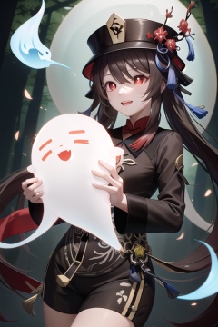 hutaodef, grabbing ghost, (light blue flame floats in mid-air), gloomy forest, masterpiece,best_quality,