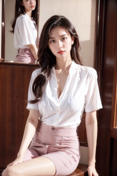 1 girl, female, drunk,Business women,Being pressed against the wall,Age:58,height:170, (waist-hip ratio:0.7),unbuttoned shirt,cleavage cutout,taut shirt,sheath dress,