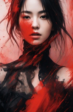 abstract portrait of 1girl,undefined gender,fragmented visual style,red and black color palette,evokes feelings of rebellion,passion,and freedom,blurred boundaries,high resolution,aesthetic,<lora:LCM&TurboMix:1>,