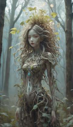 <lora:xl-shanbailing-1103Wood elements-bailong plant girl:0.8>,bailong plant girl,(girl made of dead plants),forest,beautiful psychedelic psychedelic white complex detailed elaborate,plant,cute face,long hair,curly hair,torso,body,8k,ultra-fine knots,high resolution,(best quality, masterpiece:1.2),volumetric lighting,focus,colorful,((extreme detail)),luminescence,full body,science fiction,