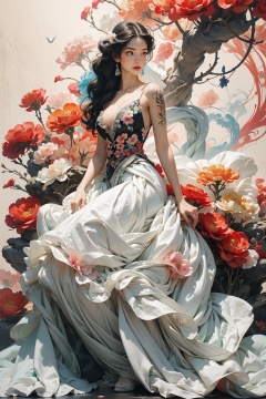 ,girl, flowing skirts,(smoke),Giant flowers,ZYM