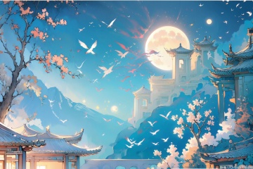 -Hanama wine, scenery, tree, sky, no humans, star \(sky\), architecture, east asian architecture, night, moon, night sky, outdoors, bird, starry sky, cloud, building, house<lora:Hanama wine-000018:0.8>,