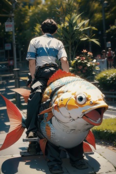 absurdres,incredibly absurdres,reality,realistic,,(solo:1.2),1boy,full_shot, astride,astride a fish