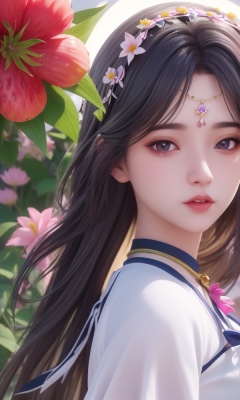 (,1girl, ,best quality, )<lora:362-DA-神印王座-女使大人:0.6>,ultra detailed background,ultra detailed background,ultra realistic 8k cg, , ,masterpiece, (( , )),, ultra realistic 8k cg, ,tamari \(flawless\),     ,lily \(flower\) ,full moon ,strawberry blossoms      (()), (),