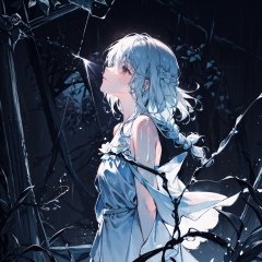 late at night,dark, light rain,dark, limited palette, contrast, phenomenal aesthetic, best quality, sumptuous artwork, (masterpiece), (best quality), (ultra-detailed), (((illustration))), ((an extremely delicate and beautiful)), (detailed light), light rain,dark,(((camellia))), camellia, camellia,vines, forest, ruins, Blurred picture, lens flare, hdr, Tyndall effect,damp,wet, 1girl, bare shoulders, broken glass, broken wall, white hair, blinking, white dress, closed mouth, constel lation, flat color, braid, blinking, white robe, float, closed mouth, constel lation, flat color, looking up, standing, medium hair, standing, solo
