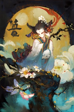 (no one:1.3),flower,no humans,moon,branch,white flower,solo,crescent moon,chinese myth,<lora:1101guochao:0.8>,
