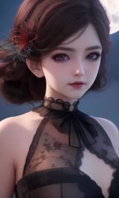 (,1girl, ,best quality, )<lora:365-DA-梦塔·雪谜城-艾妙妙:0.7>,,ultra detailed background,ultra detailed background,ultra realistic 8k cg, ,masterpiece, (( , )),ultra realistic 8k cg, ,tamari \(flawless\),     ,spider lily,full moon (()), (),