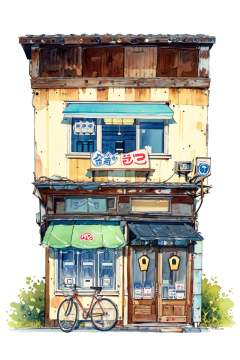 -Architectural marker painting, bicycle, no humans, scenery, ground vehicle, sign, white background, traditional media, outdoors, shop, door, painting \(medium\), simple background, plant, watercolor \(medium\), building, air conditioner, vending machine, storefront<lora:Architectural marker painting-000018:1>