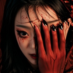 huapi,huapi girl,monster girl,huapighost,1girl,black nails,solo,looking at viewer,brown eyes,long hair,black hair,nail polish,brown hair,fingernails,blood,jewelry,portrait,bug,hands on own face,red theme,black eyes,<lora:LCM_LoRA_Weights_SD15:1>,<lora:NewHuapi:1>,
