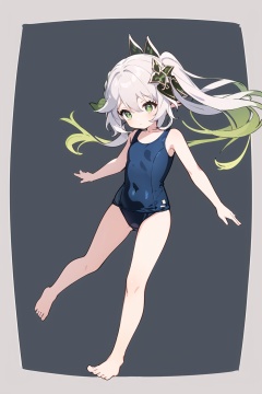 1girl,nahida,full body,((Unitard school swimsuit)), barefoot,long hair,flat chest,white background