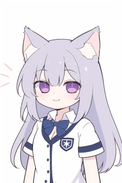 purple eyes, expressionless, eyelashes, best quality, smile, White cat ears