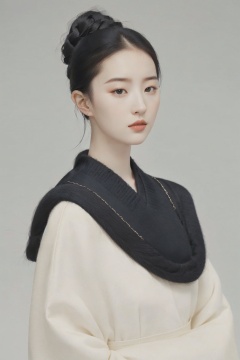 1girl,black_hair,Balenciaga model,looking at viewer,pale skin,blurry_background,realistic,solo,upper_body,,mongolian_style