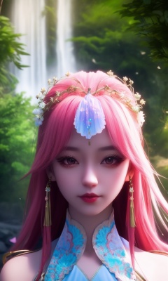 (,1girl, ,best quality, ),looking at viewer, <lora:368-DA-沧元图-柳七月-凤凰变身:0.8>,,ultra detailed background,ultra detailed background,ultra realistic 8k cg, , ,masterpiece, (( , )),,, ultra realistic 8k cg, ,tamari \(flawless\),     ,peony \(flower\),   waterfall,    (()), (),
