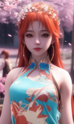 (,1girl, ,best quality, ),looking at viewer, <lora:368-DA-沧元图-柳七月-凤凰变身:0.8>ultra detailed background,ultra realistic 8k cg,ultra detailed 8k cg,masterpiece,upper body,  (( , )),, ,science fiction,mole, ultra realistic 8k cg, ,tamari \(flawless\),   ,outdoors, sun,sunlight, cherry blossoms,      (()), (),