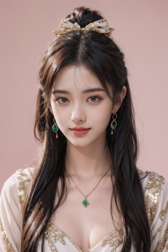Gold-Trim Jewelry, long earrings, bow Hair ornament, Agate Necklace, emerald bracelet,