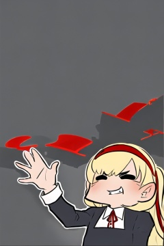 1girl,wsdxj,chibi,solo,ojousama,age regression,red headband,red bowtie,evil atmosphere,highres,waving,