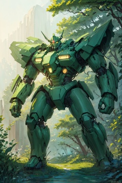 clenched hand, clenched hands, glowing, grass, green background, green theme, mecha, no humans, punching, retro artstyle, science fiction