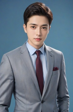 1male,masterpiece,best quality,ultra high res,(30 y.o.),(photorealistic:1.4),business suit,(blue background:1.3),identification photo,(straight-on:1.2),smlie,
