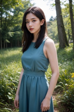 (best quality:1.4),(masterpiece:1.4),(photorealistic:1.4),(ultra high res, raw photo:1.4),(hdr, hyperdetailed:1.2),midsommar style,overgrown forest,girl,bluray image,uncropped,a woman in a dress standing in a field,sunny,Sanraku,a lonely woman,streaming,frequency indie album cover,highres,Tyndall effect,moody lighting,reality,photo,