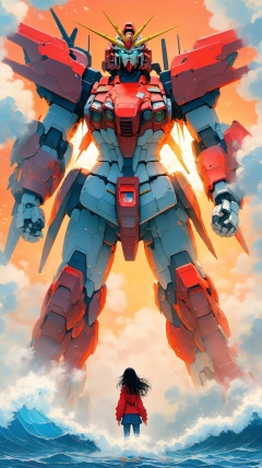 anime artwork BJ_Sacred_beast_Illustration,gundam,1girl,solo,long_hair,black_hair,standing,water,bird,robot,mecha,smoke,science_fiction,waves,v-fin,photo,8k,intricate,highly detailed,majestic,digital photography,broken glass,(masterpiece, sidelighting, finely detailed beautiful eyes:1.2),hdr,realistic,high definition,<lora:SSDXL_acred_beast_Illustration:0.7>, . anime style, key visual, vibrant, studio anime, highly detailed