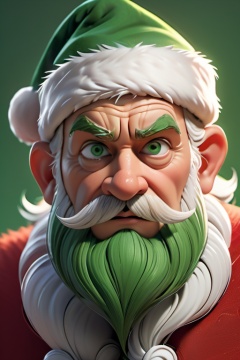 masterpiece, best quality, portrait, surreal, digital painting, HDR, Pixar style, 1man, sinister old man, santa claus ((menacing, evil, dominating)), ((short green hair)), ((green eyes)), Dark Green Skintight Santa Suit, flat chest, Futurism, Tim Burton, sideways glance, foreshortening, extremely detailed 8K, high resolution, ultra quality, highly detail eyes, highly detail mouth, highly detailed face, perfect eyes, both eyes are the same, hd, 8k
