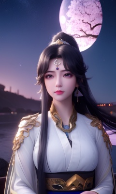 (,1girl, ,best quality, ),looking at viewer, <lora:373-DA-仙逆-周紫虹:0.8> ,, ,masterpiece,(( , )),, realistic,science fiction,mole,,ultra realistic 8k cg, flawless,tamari \(flawless\),  ,cherry blossoms,,night, night sky, crescent moon, moonlight,,(facing viewer, looking at viewer, , ),  (()), (),