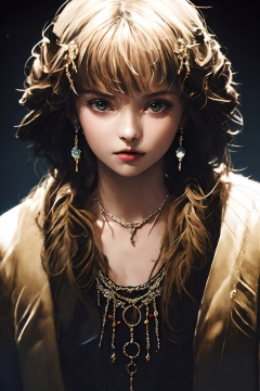 1girl,upper body,necklace,earrings,jewelry,(((masterpiece, best quality))), in the dark,deep shadow,