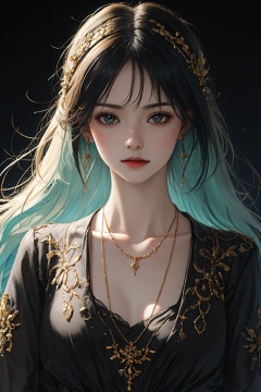 1girl,upper body,necklace,earrings,jewelry,(((masterpiece, best quality))), in the dark,deep shadow, sifang