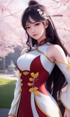 (,1girl, ,best quality, ),looking at viewer, <lora:374-DA-斗罗大陆-江楠楠-露肩装:0.8> ultra detailed background,ultra realistic 8k cg,ultra detailed 8k cg,masterpiece,upper body,  (( , )),, ,science fiction,mole, ultra realistic 8k cg, ,tamari \(flawless\),   ,outdoors, sun,sunlight, cherry blossoms,      (()), (),