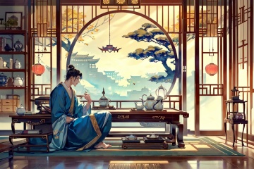 (masterpiece:1.2),best quality,PIXIV,Hanama wine,sitting,painting \(object\),single hair bun,indoors,hair bun,long sleeves,multiple boys,table,holding,robe,2boys,lattice,profile,ceiling,outstretched arm,eastern dragon,male focus,long hair,hair pulled back,black hair,looking at another,wide sleeves,on floor,food,half updo,arm support,teapot,cup,topknot,vase,dragon,updo,indian style,chinese clothes,cushion,east asian architecture,round window,bangs,book,from side,architecture,fruit,sliding doors,window,lantern,smoke,shelf,hair ornament,ponytail,scroll,<lora:Hanama wine V2-000018:0.8>,