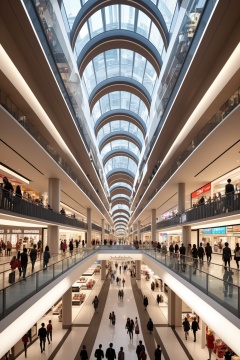 A futuristic and stunningly beautiful high-rise shopping center architectural structure with bold,futuristic design elements,blending seamlessly into the art form of digital illustration. Inspired by the works of Syd Mead. The scene showcases the center amidst a bustling city,its sleek lines contrasting with the urban environment. A warm color temperature adds vibrancy,highlighting the architectural details. Shoppers and visitors exhibit expressions of awe and excitement. Illuminated by soft,diffused lighting,the atmosphere exudes sophistication and promise of tomorrow,(masterpiece),(high quality),best quality,real,(realistic),super detailed,(full detail),(4k),8k,no humans,scenery,building,((500-meter tall buildings)),outdoors,window,road,sky,street,lamppost,tree,power lines,Organic modernist architecture,glass curtain walls,interesting shapes,super high-rise buildings in the block,