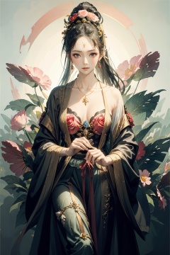 1girl, solo, hair ornament, flower, hair flower, makeup, blue hair, eyelashes, , hanfu,full body,looking_at_viewer,earrings,neck_tie,