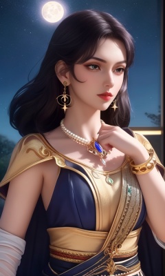 (,1girl, ,best quality, ),looking at viewer, <lora:377-DA-斗罗大陆-木槿:0.8> ,, ,masterpiece(,1girl,night, starry sky, milky way,outdoors, full moon,  night sky, darkness,  world of darkness, , ) ,ultra realistic 8k cg, flawless, clean, masterpiece, professional artwork, famous artwork, (( , )),, , (rich:1.4), prestige, luxury, jewelry, diamond, gold, pearl, gem, sapphire, ruby, emerald, intricate detail, delicate pattern, charming, alluring, seductive, erotic, enchanting, hair ornament, necklace, earrings, bracelet, armlet,halo((, )), (),