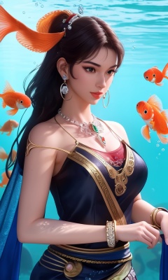 (,1girl, ,best quality, ),looking at viewer, <lora:377-DA-斗罗大陆-木槿:0.8> ,, ,masterpiece, ((((, solo,  goldfish, ,solo focus, ,underwater, )))) ,ultra realistic 8k cg, flawless, clean, masterpiece, professional artwork, famous artwork, cinematic lighting, cinematic bloom,  (( , )),, , unreal, science fiction, luxury, jewelry, diamond, gold, pearl, gem, sapphire, ruby, emerald, intricate detail, delicate pattern, charming, alluring, seductive, erotic, enchanting, hair ornament, necklace, earrings, bracelet, armlet,,(()),